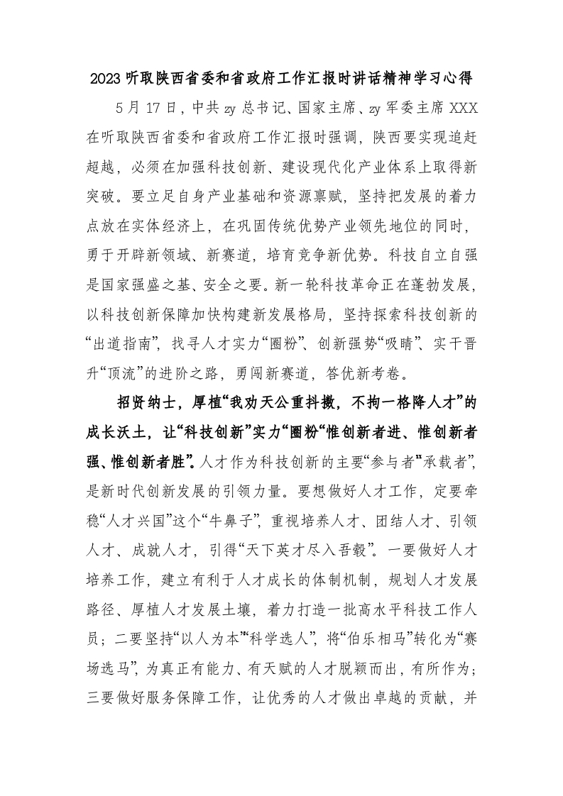 2023听取陕西省委和省政府工作汇报时讲话精神学习心得体会(研讨)