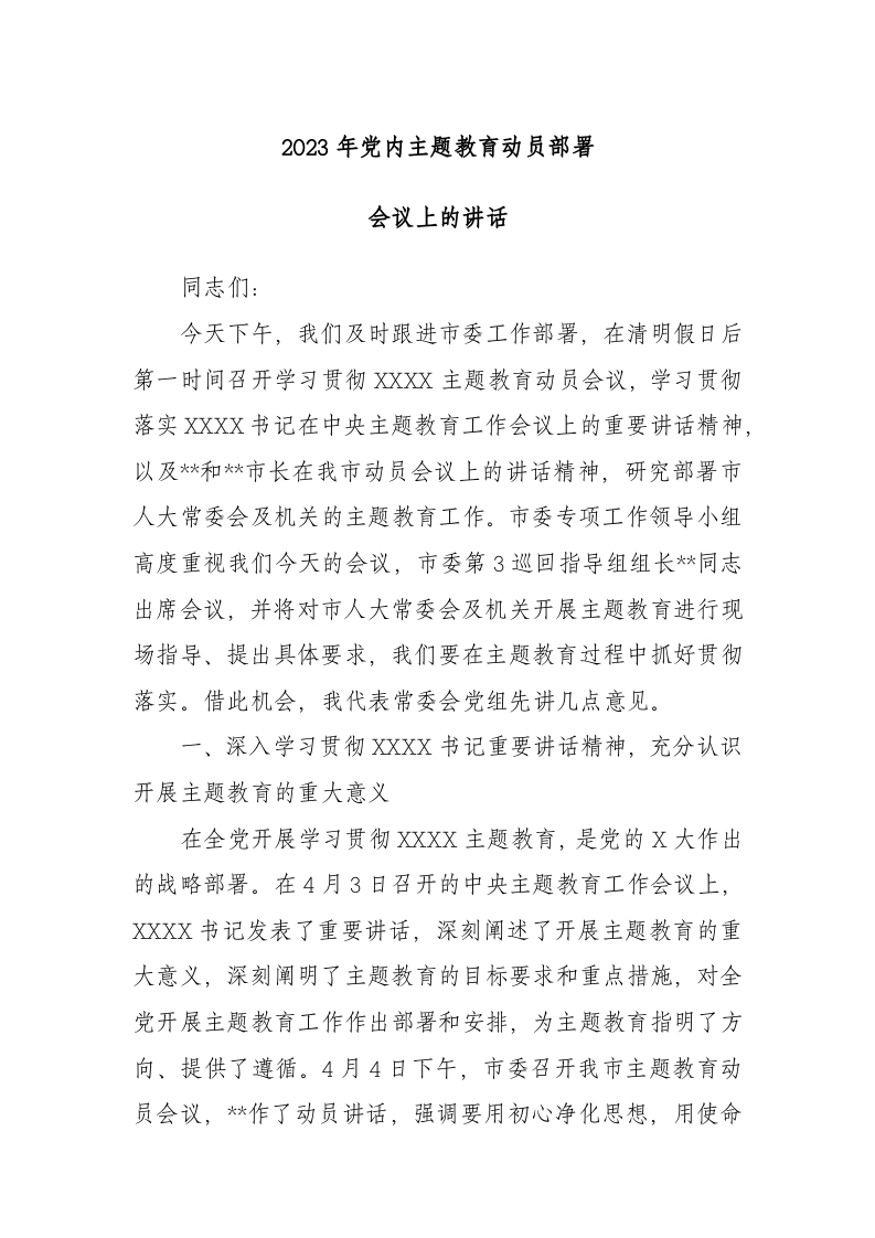 / 2023年主题教育动员部署会议上的讲话