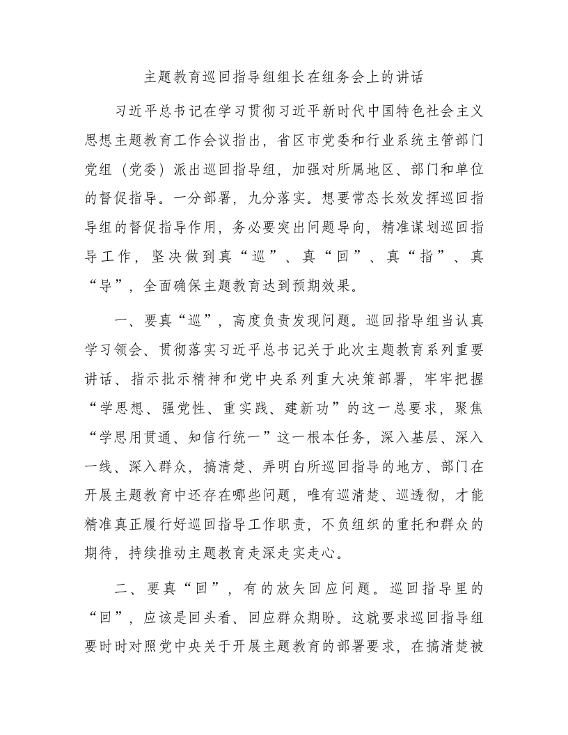 / 2023年主题教育巡回指导组组长在组务会上的讲话
