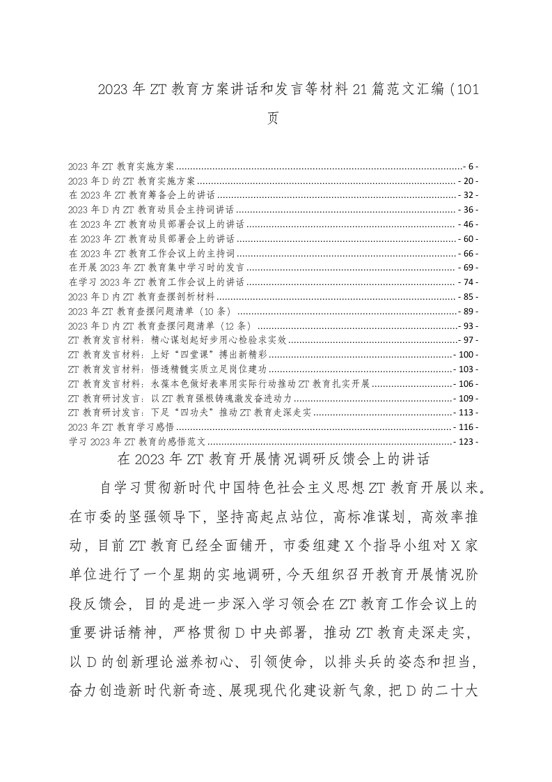 / 2023年主题教育方案讲话和发言等材料21篇材料汇编(共101页)