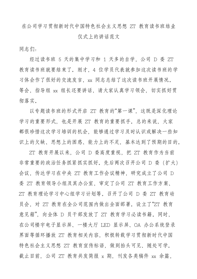 / 2023年主题教育读书班结业仪式讲话集团企业