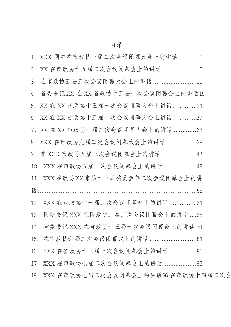 2023年政协委员会闭幕会上的讲话汇编38篇.Doc