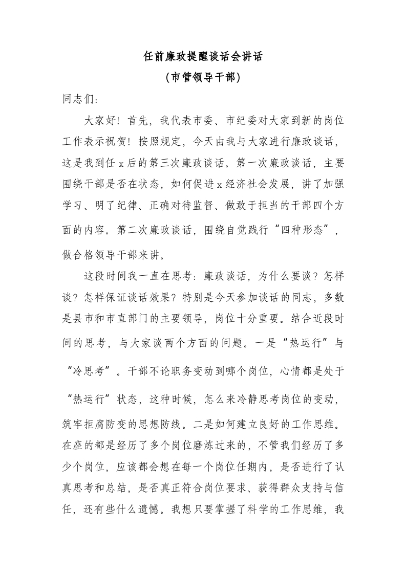 / 2023年管领导干部任前廉政提醒谈话会讲话