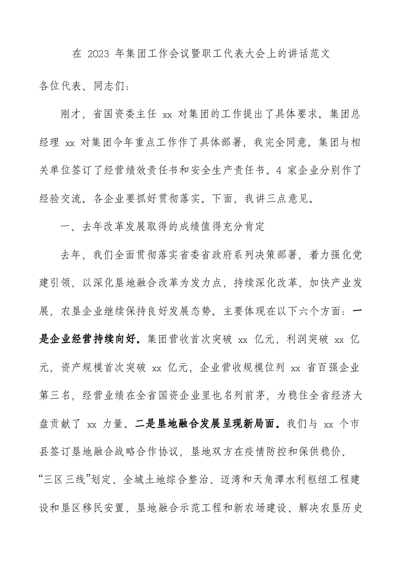 2023年集团工作会议暨职工代表大会讲话