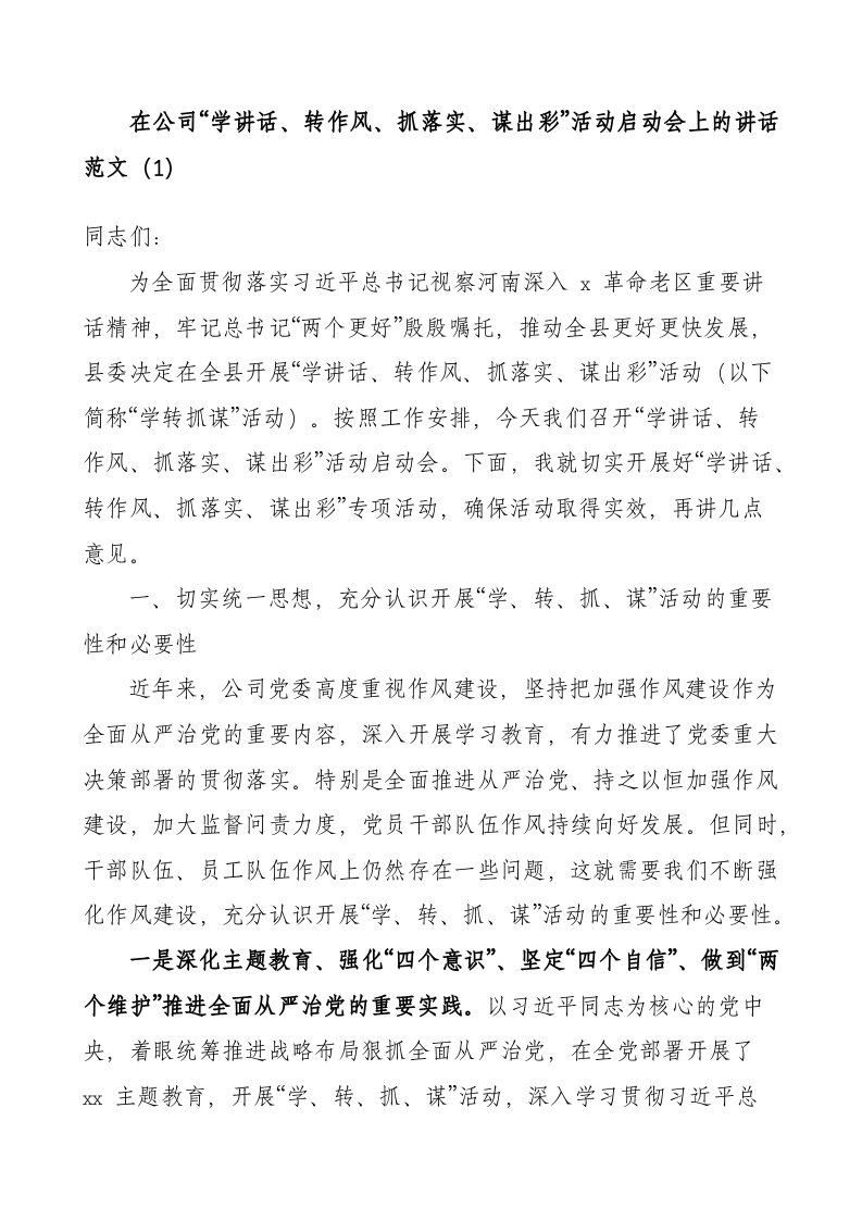 2篇在公司学讲话转作风抓落实谋出彩活动启动会上的讲话和活动方案范文