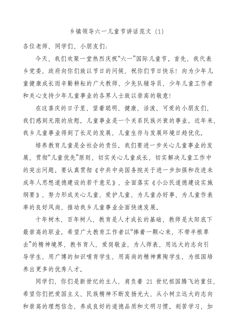 / 4篇六一儿童节讲话
