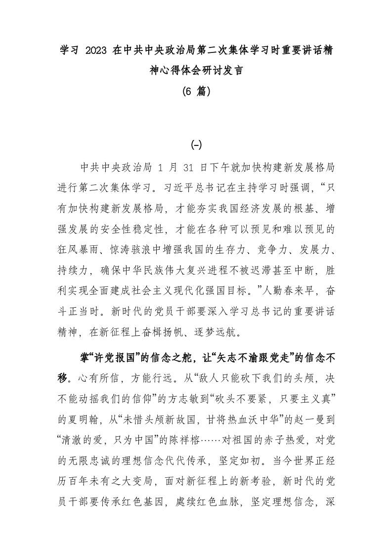 / 6篇学习2023在中共中央政治局第二次集体学习时重要讲话精神心得体会研讨发言