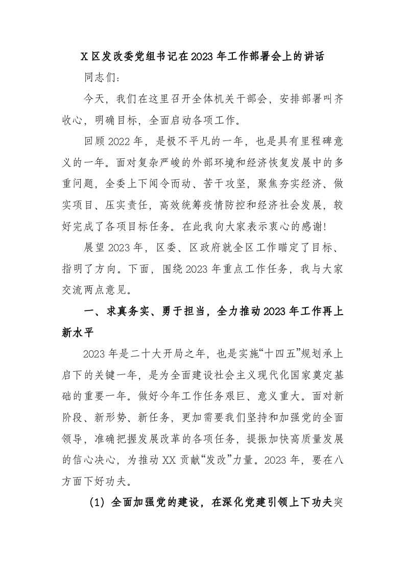 / X区发改委党组书记在2023年工作部署会上的讲话