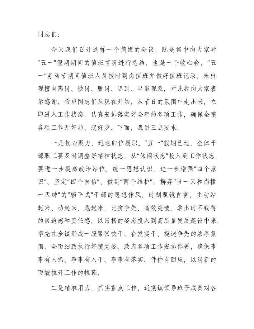 / “五一”节后收心会暨重点工作安排部署会讲话