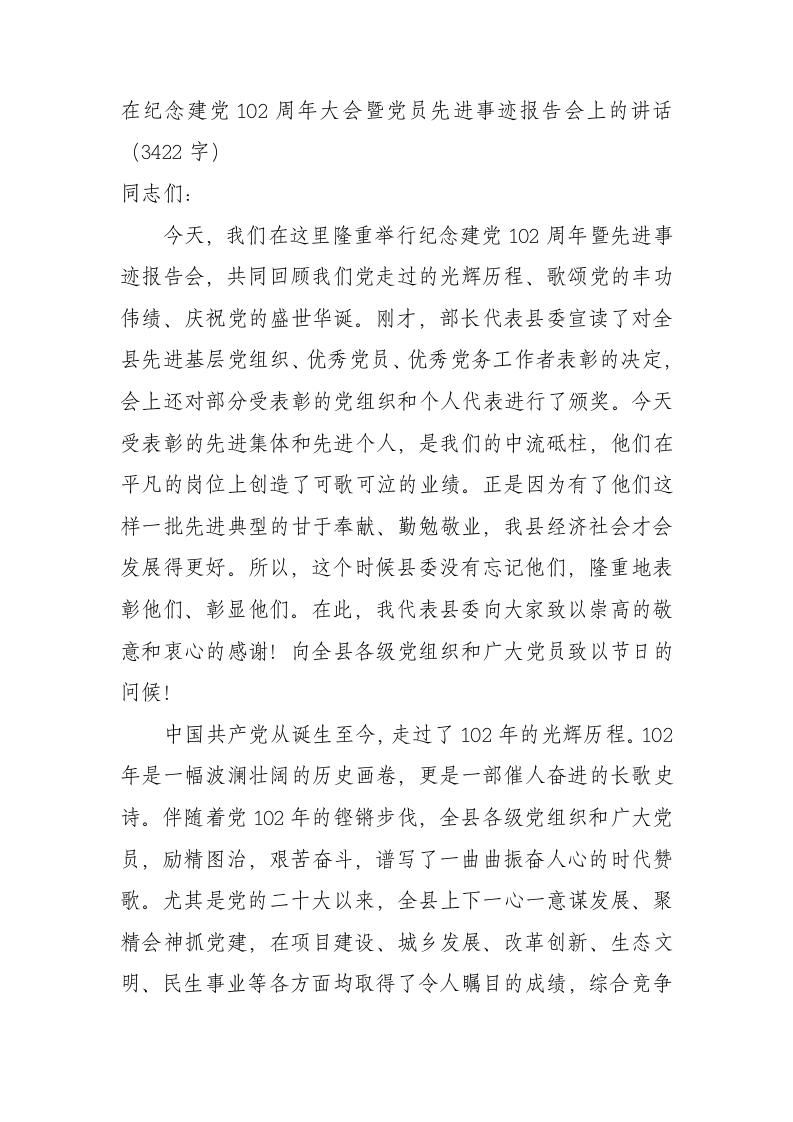七一暨党员先进事迹报告会上的讲话