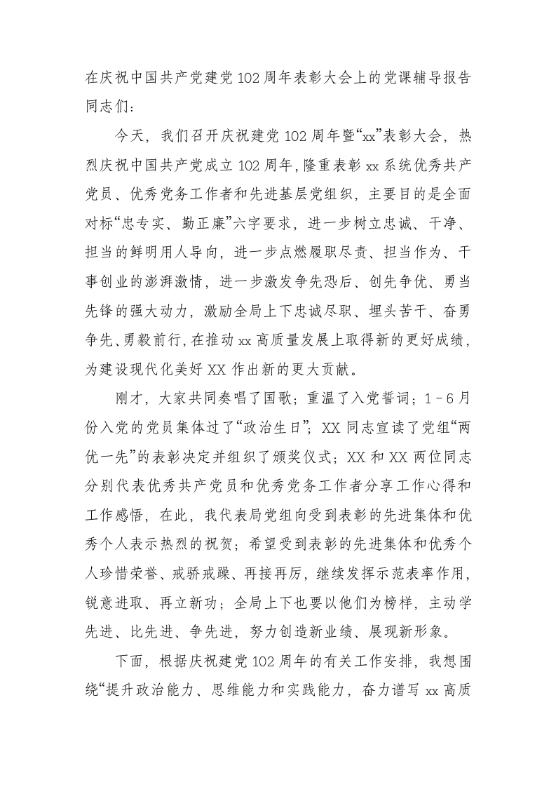 七一表彰大会上的讲话