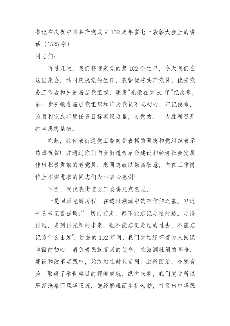 七一表彰大会上的讲话(街道1500字)