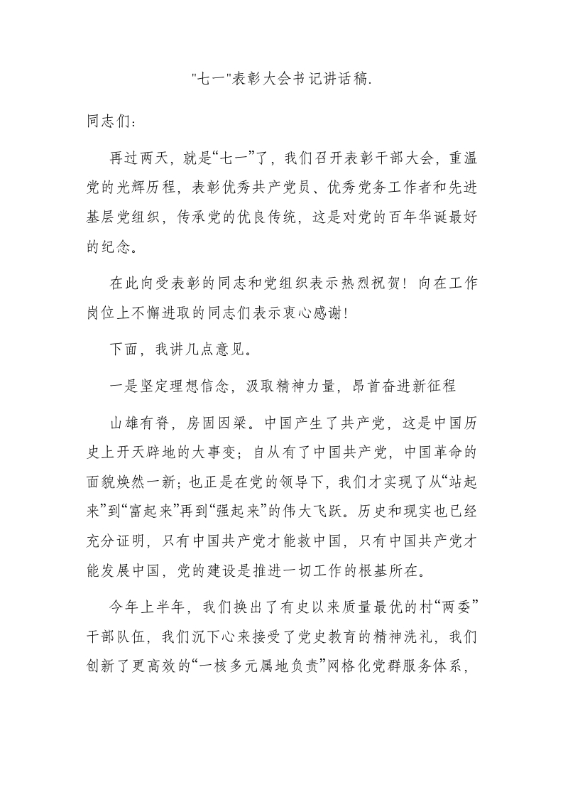 / 七一表彰大会书记讲话稿.