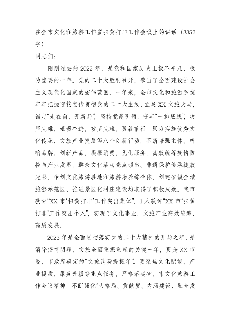/ 在全市文化和旅游工作暨扫黄打非工作会议上的讲话