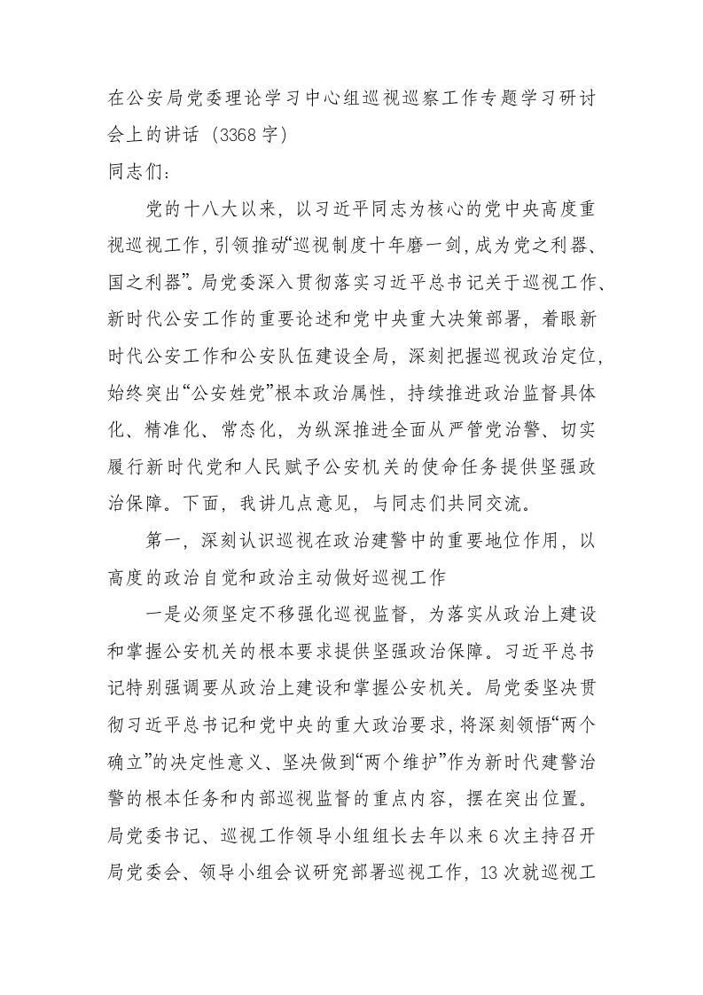 / 在公安局党委理论学习中心组巡视巡察工作专题学习研讨会上的讲话