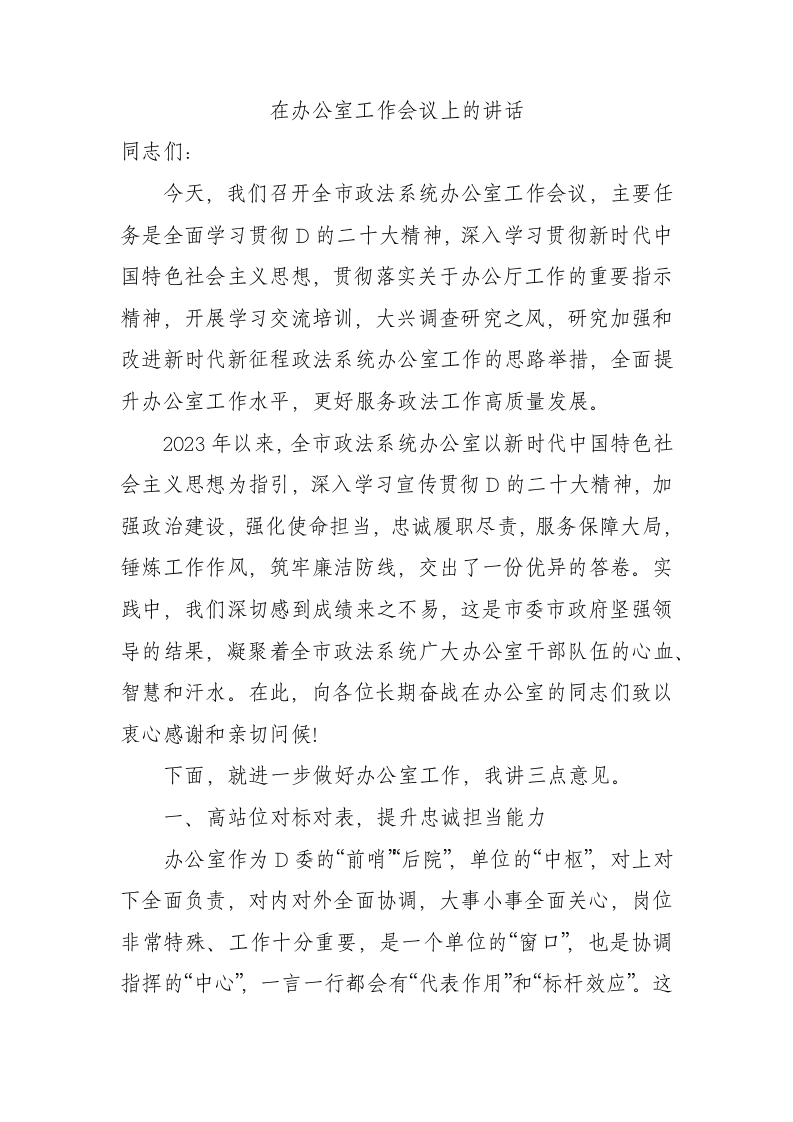 / 在办公室工作会议上的讲话