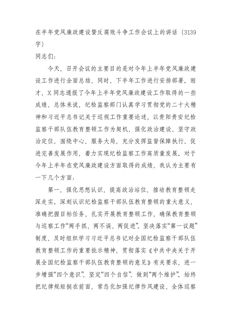 / 在半年党风廉政建设暨反腐败斗争工作会议上的讲话