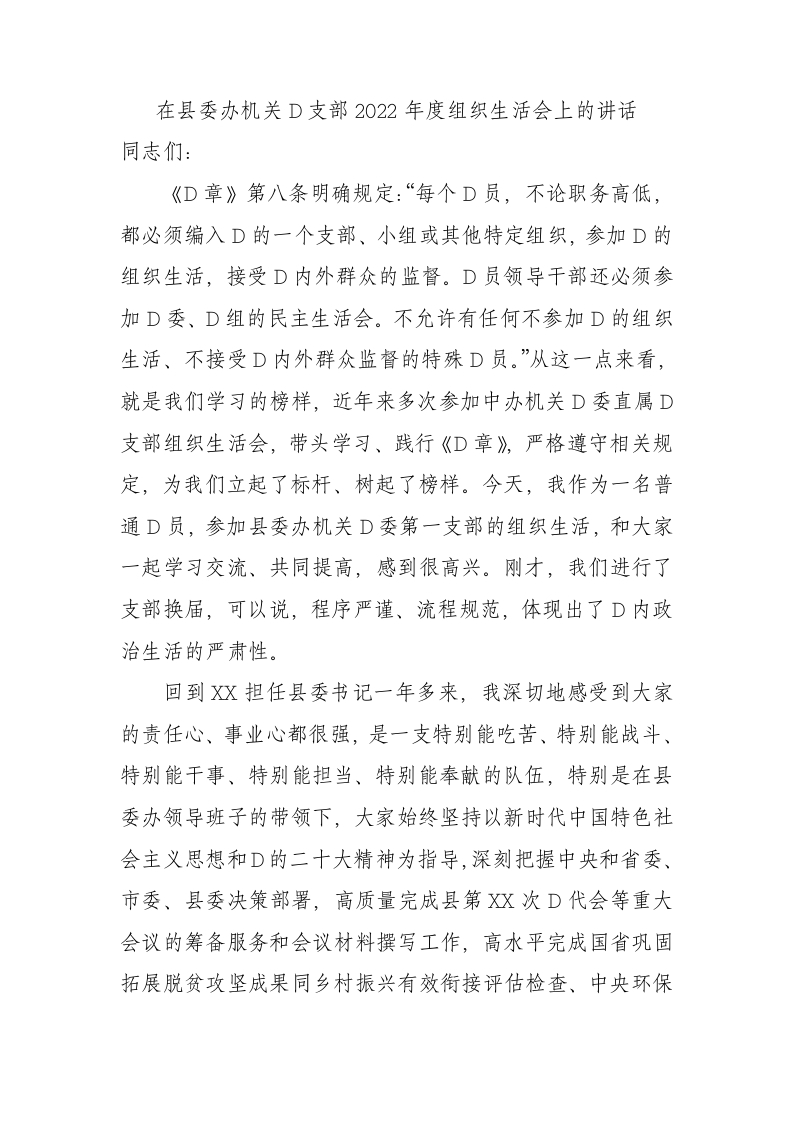 / 在县委办机关党支部XX年度组织生活会上的讲话