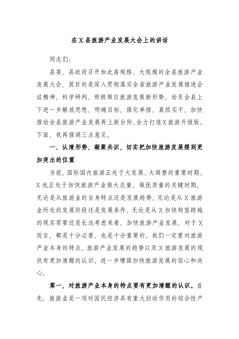 / 在县旅游产业发展大会上的讲话