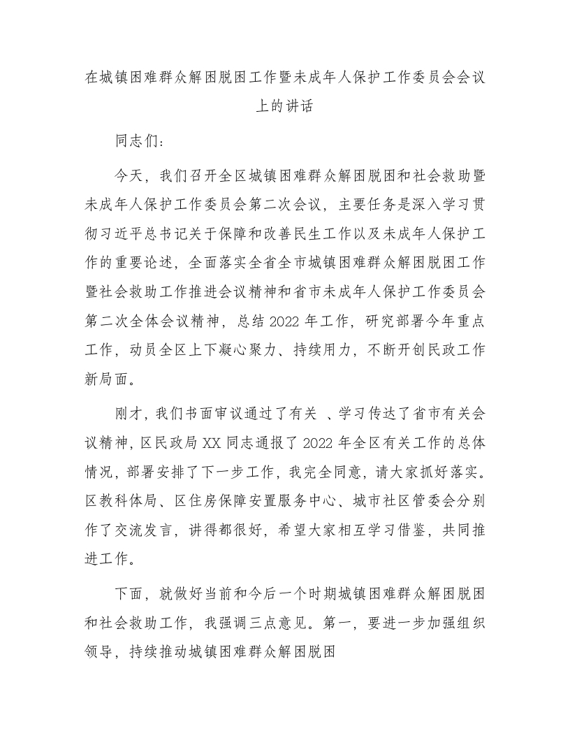 / 在城镇困难群众解困脱困工作暨未成年人保护工作委员会会议上的讲话