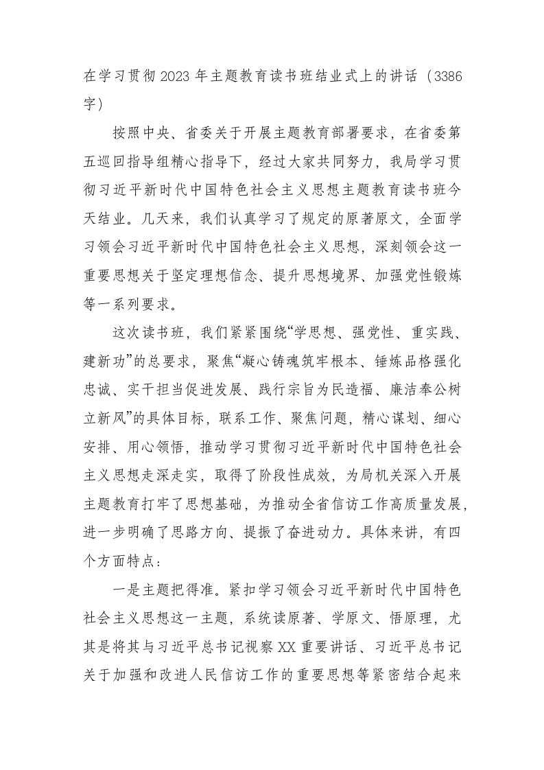 / 在学习贯彻2023年主题教育读书班结业式上的讲话