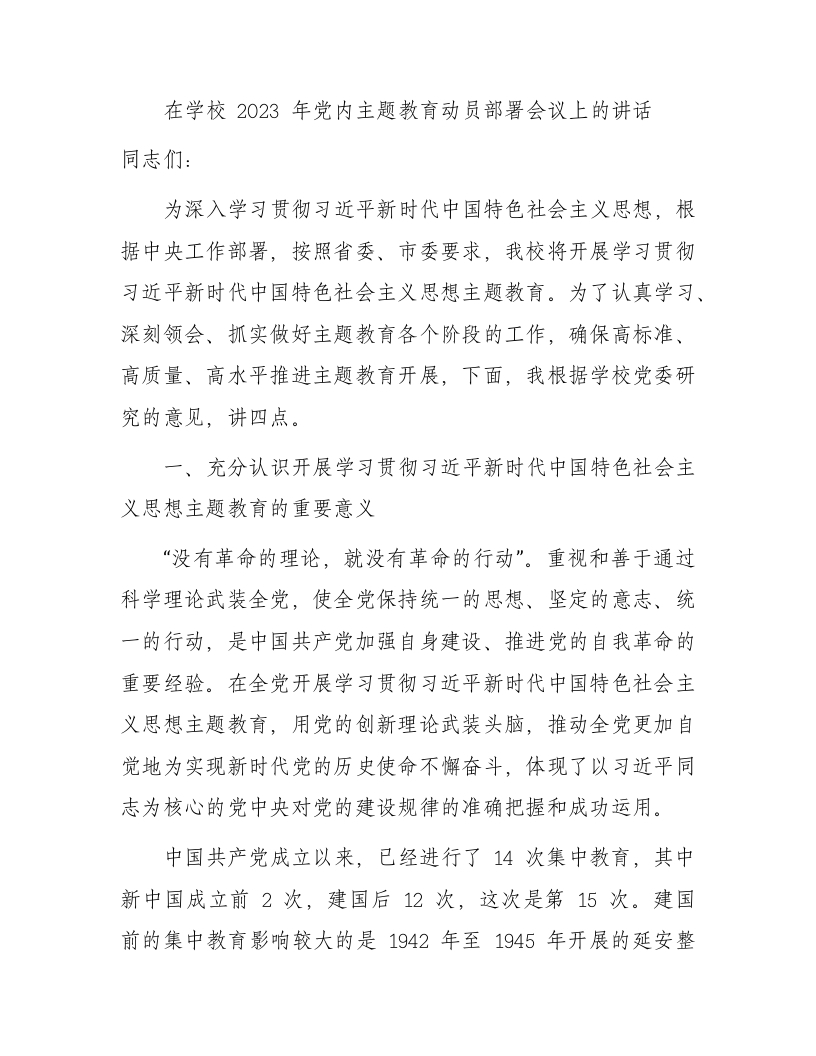 在学校2023年主题教育动员部署会议上的讲话6000字