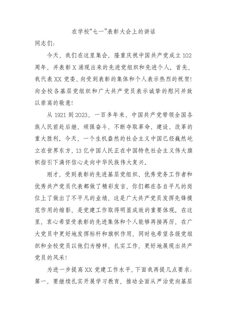 / 在学校“七一”表彰大会上的讲话