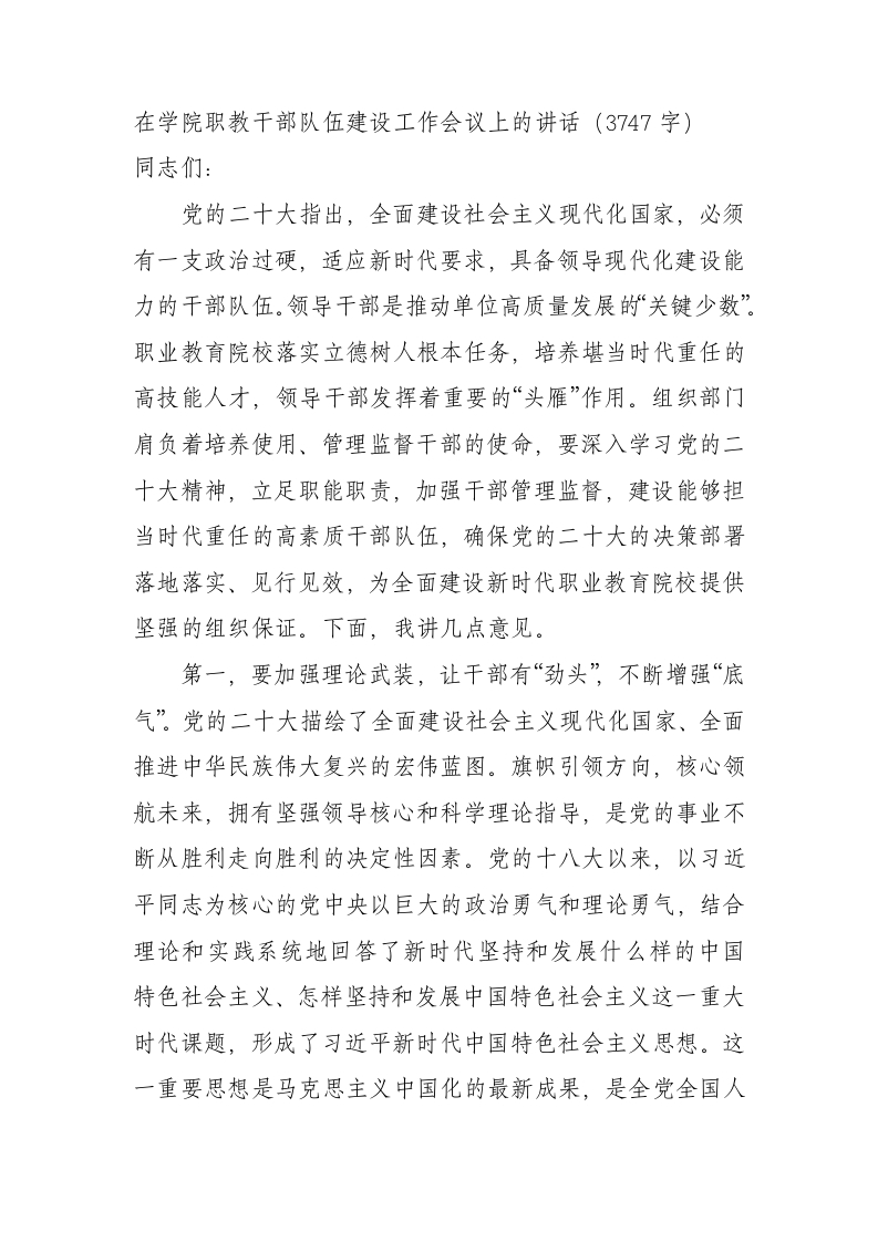 / 在学院高校职教干部队伍建设工作会议上的讲话