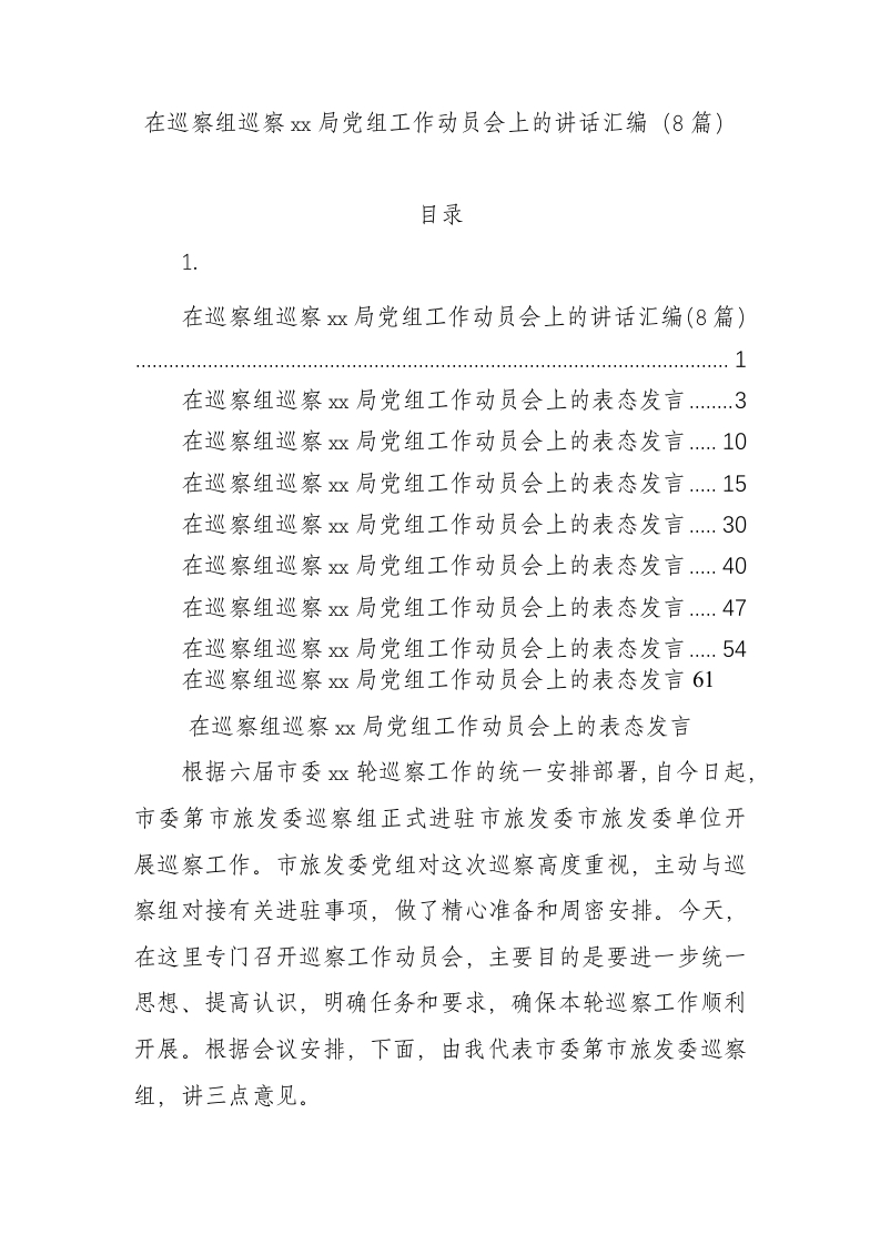 / 在巡察组巡察xx局党组工作动员会上的讲话汇编8篇