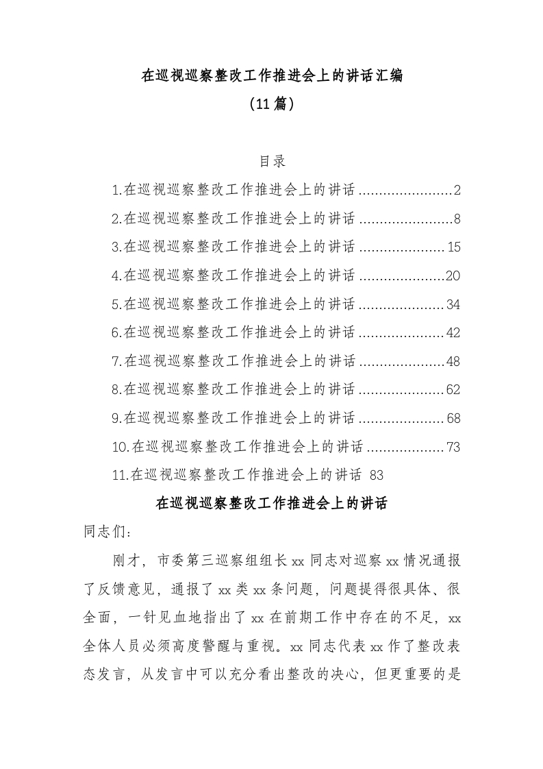 / 在巡视巡察整改工作推进会上的讲话汇编(11篇)
