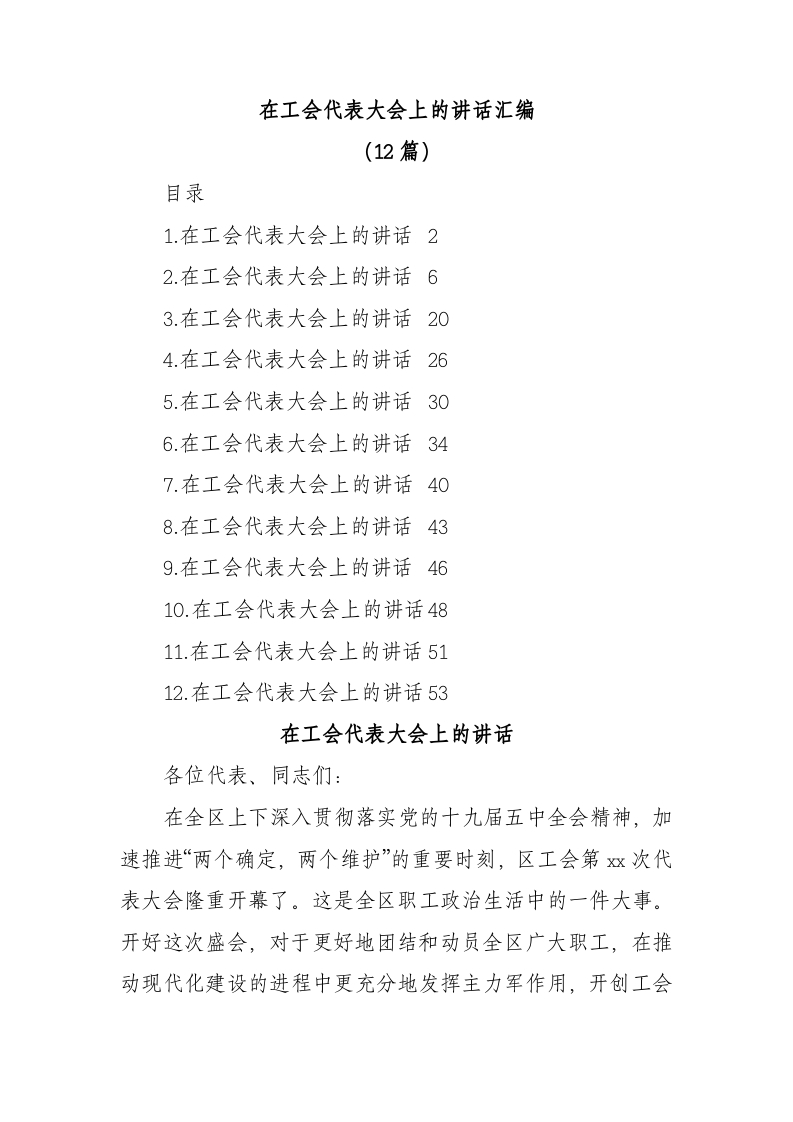/ 在工会代表大会上的讲话汇编12篇