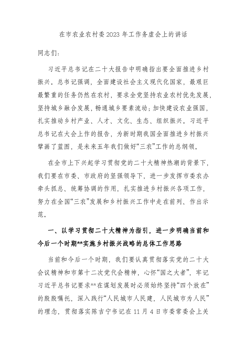 / 在市农业农村委2023年工作务虚会上的讲话