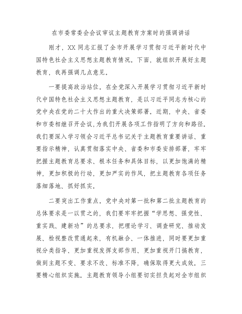 / 在市委常委会会议审议主题教育方案时的强调讲话
