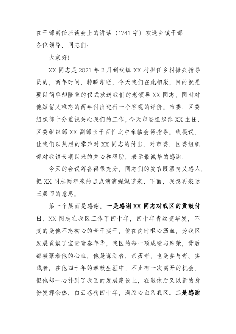 / 在干部离任座谈会上的讲话(欢送选派驻村干部)