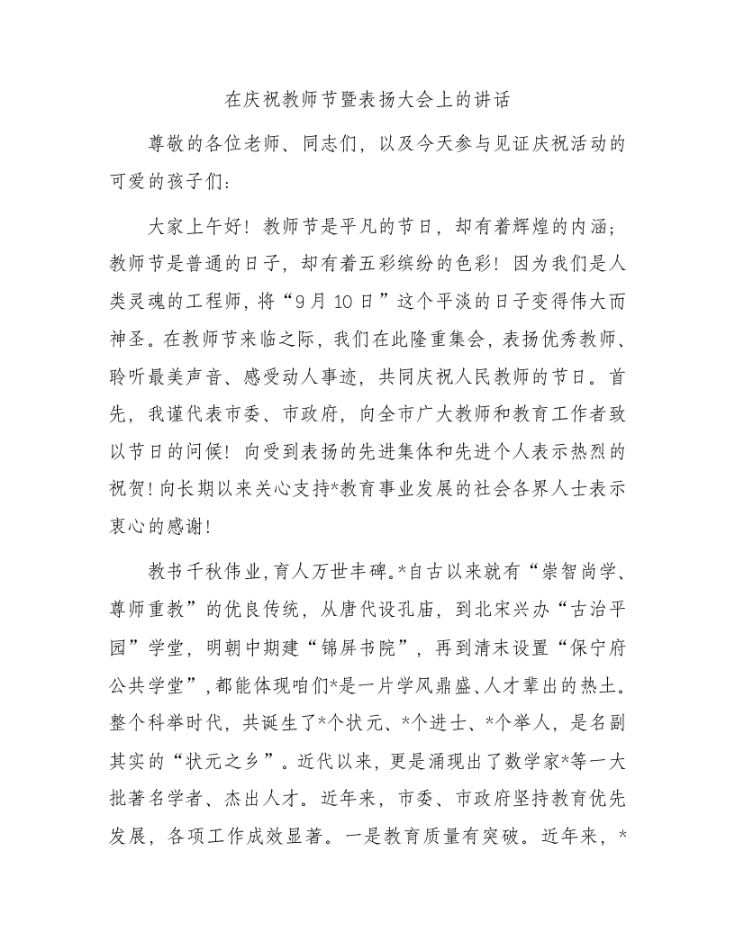 / 在庆祝教师节暨表扬大会上的讲话