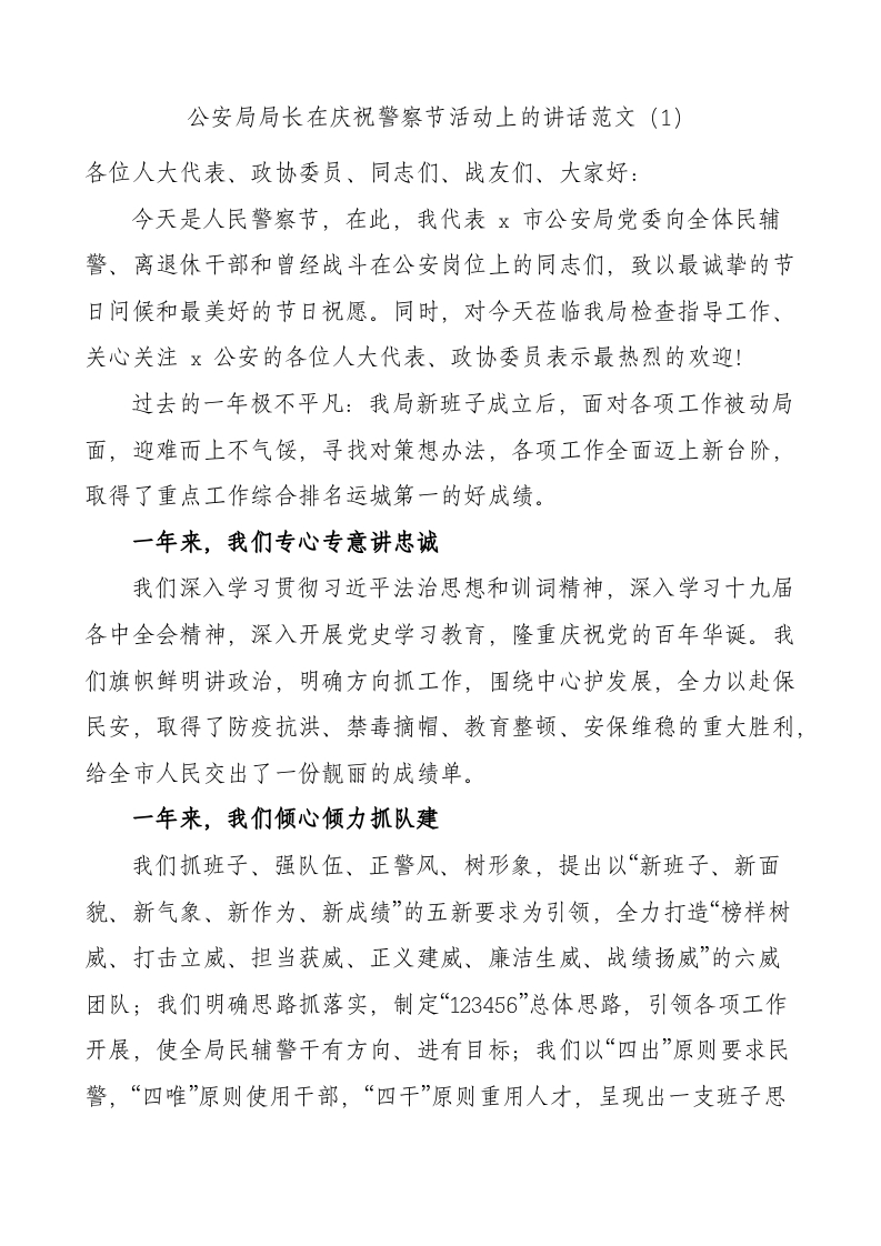 在庆祝警察节活动上的讲话致辞范文5篇公安局