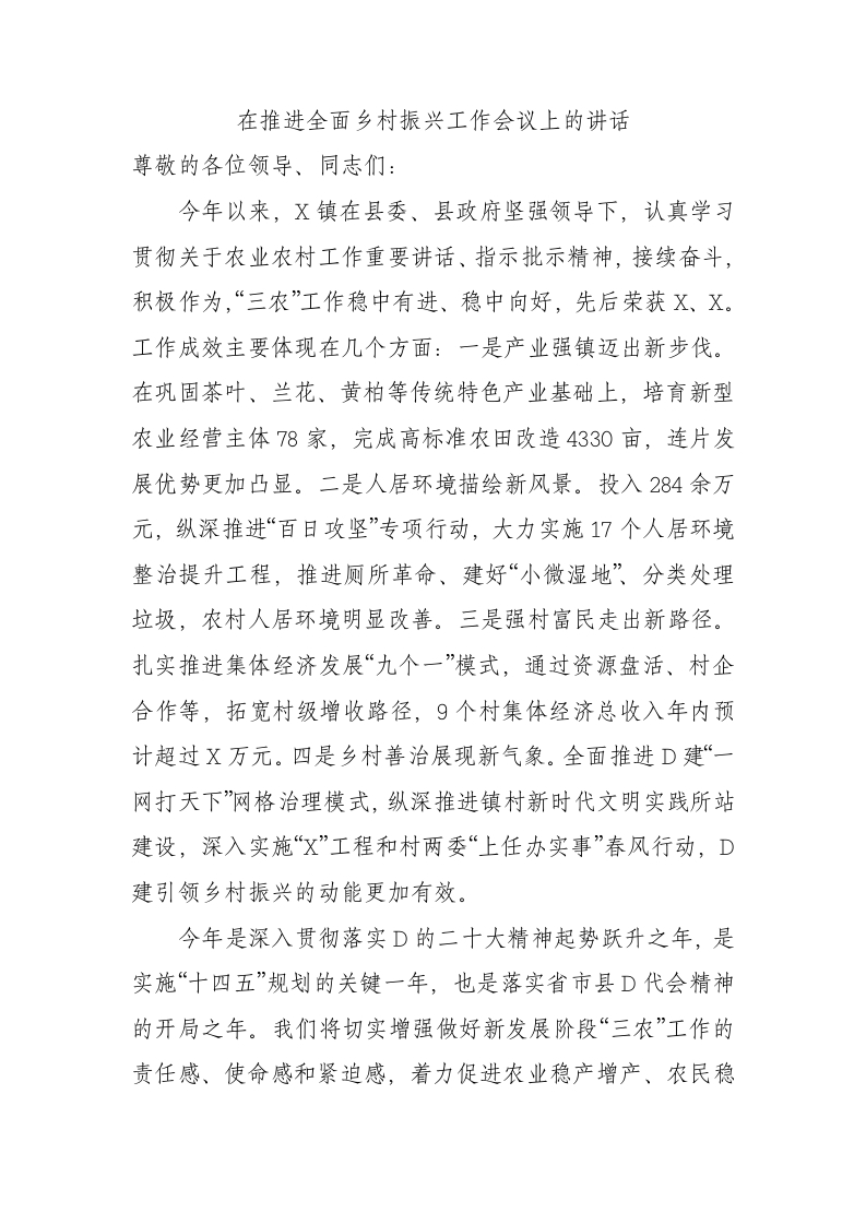 在推进全面乡村振兴工作会议上的讲话(二)
