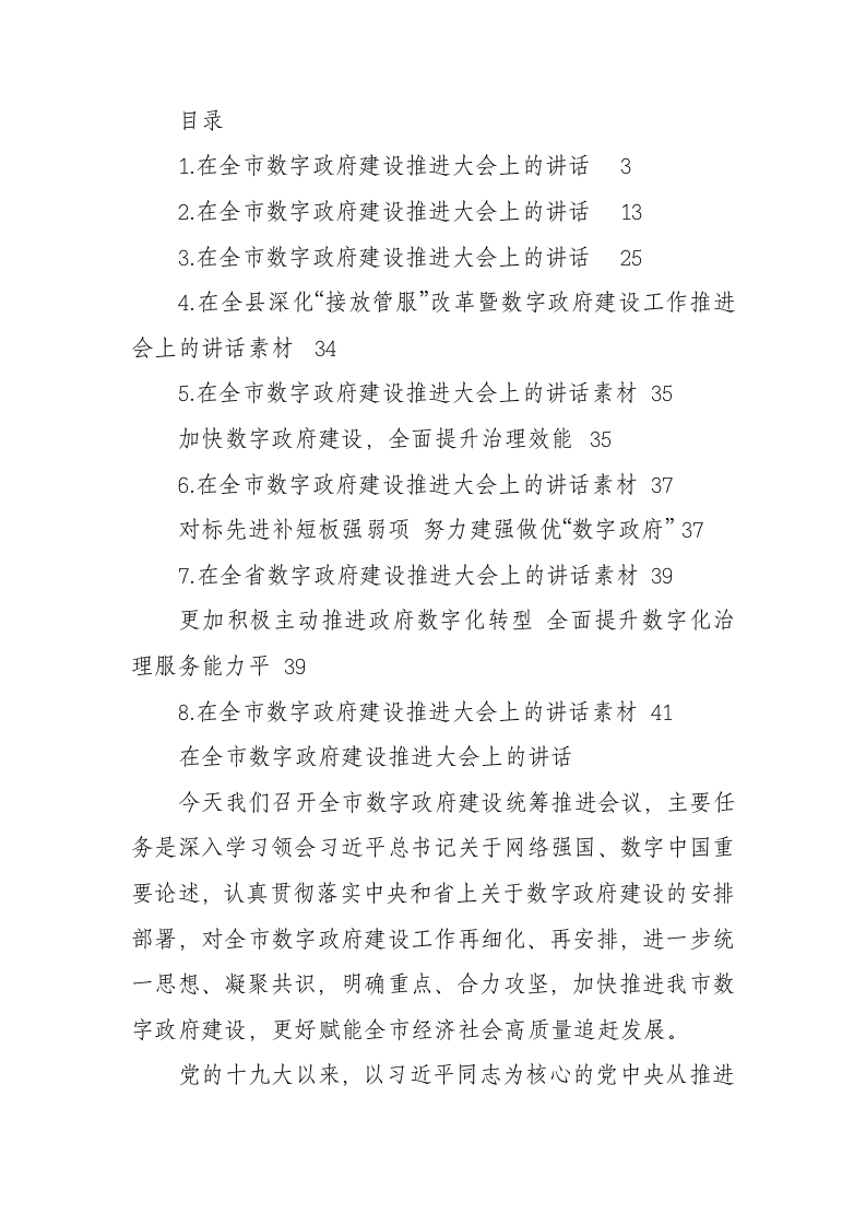 / 在数字政府建设工作推进会上的讲话汇编8篇
