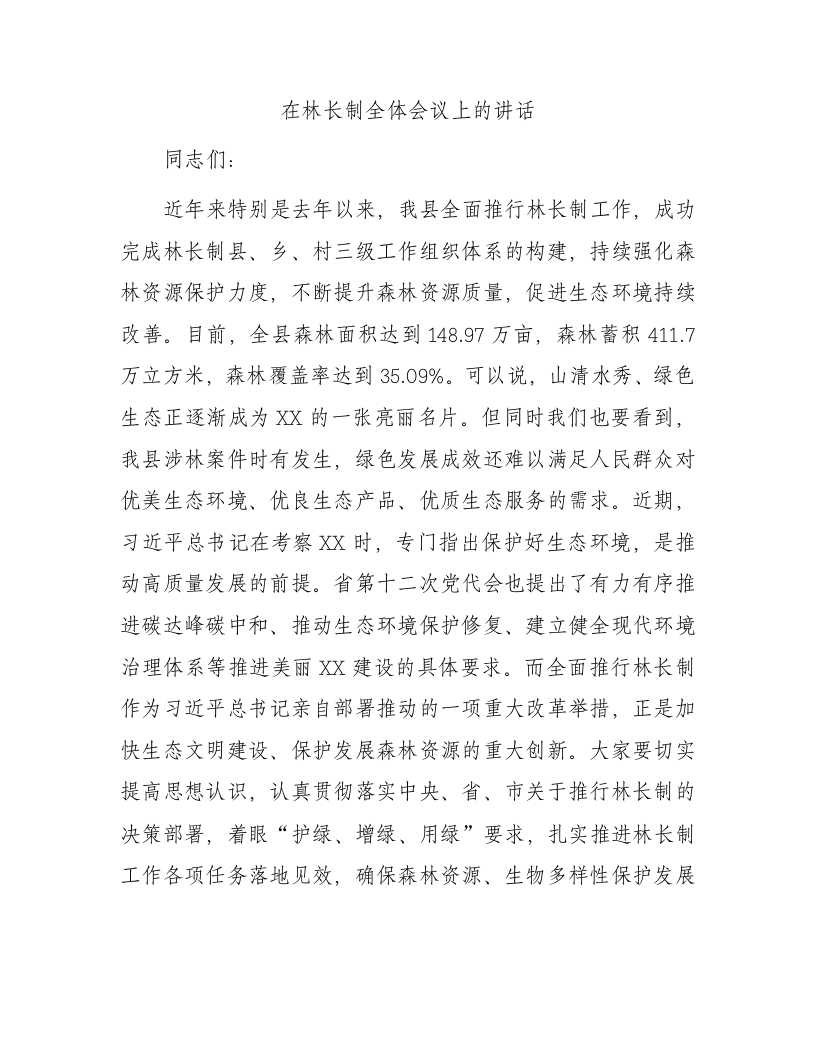 在林长制全体会议上的讲话(二)