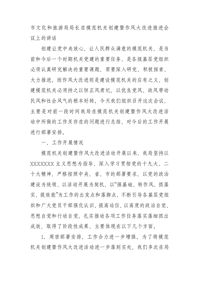 / 在模范机关创建暨作风大改进推进会议上的讲话
