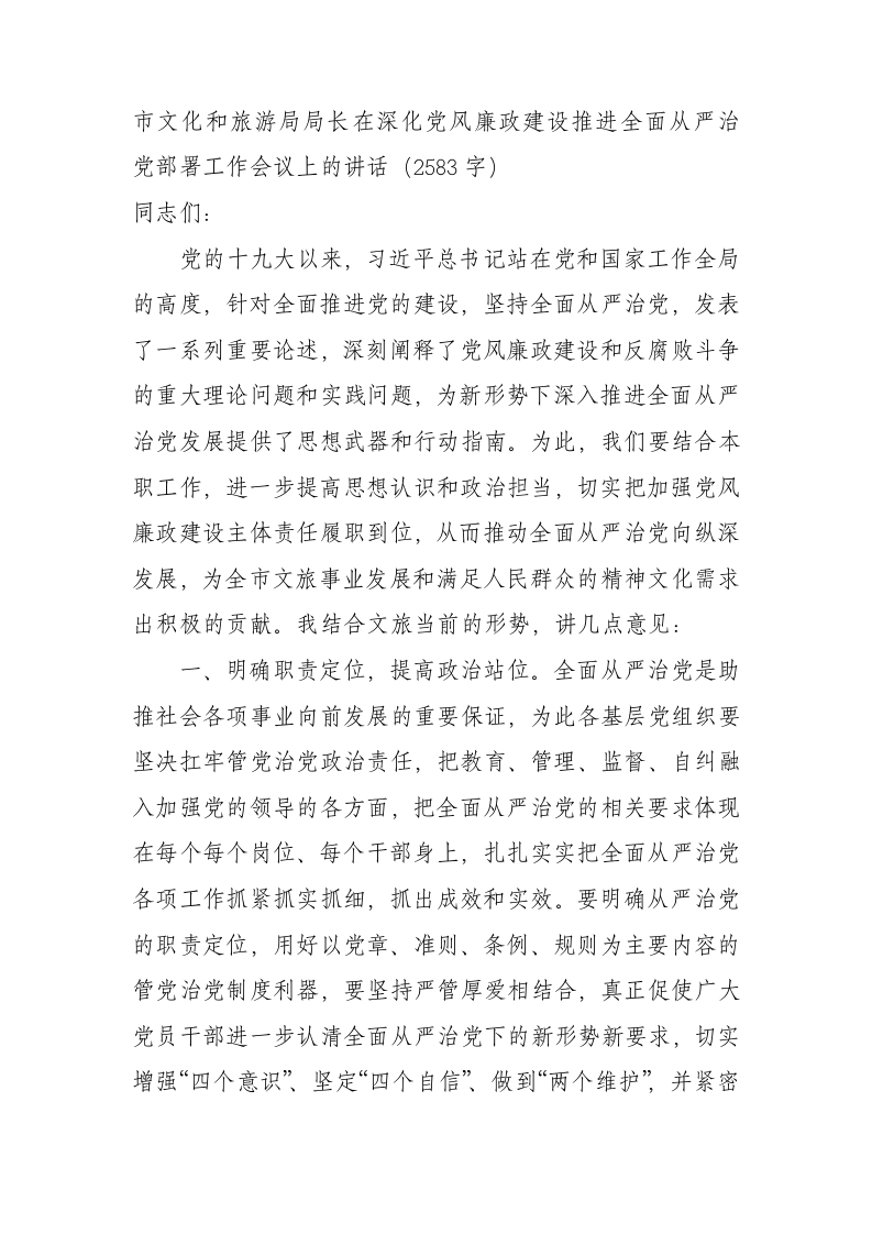 / 在深化党风廉政建设推进全面从严治党部署工作会议上的讲话
