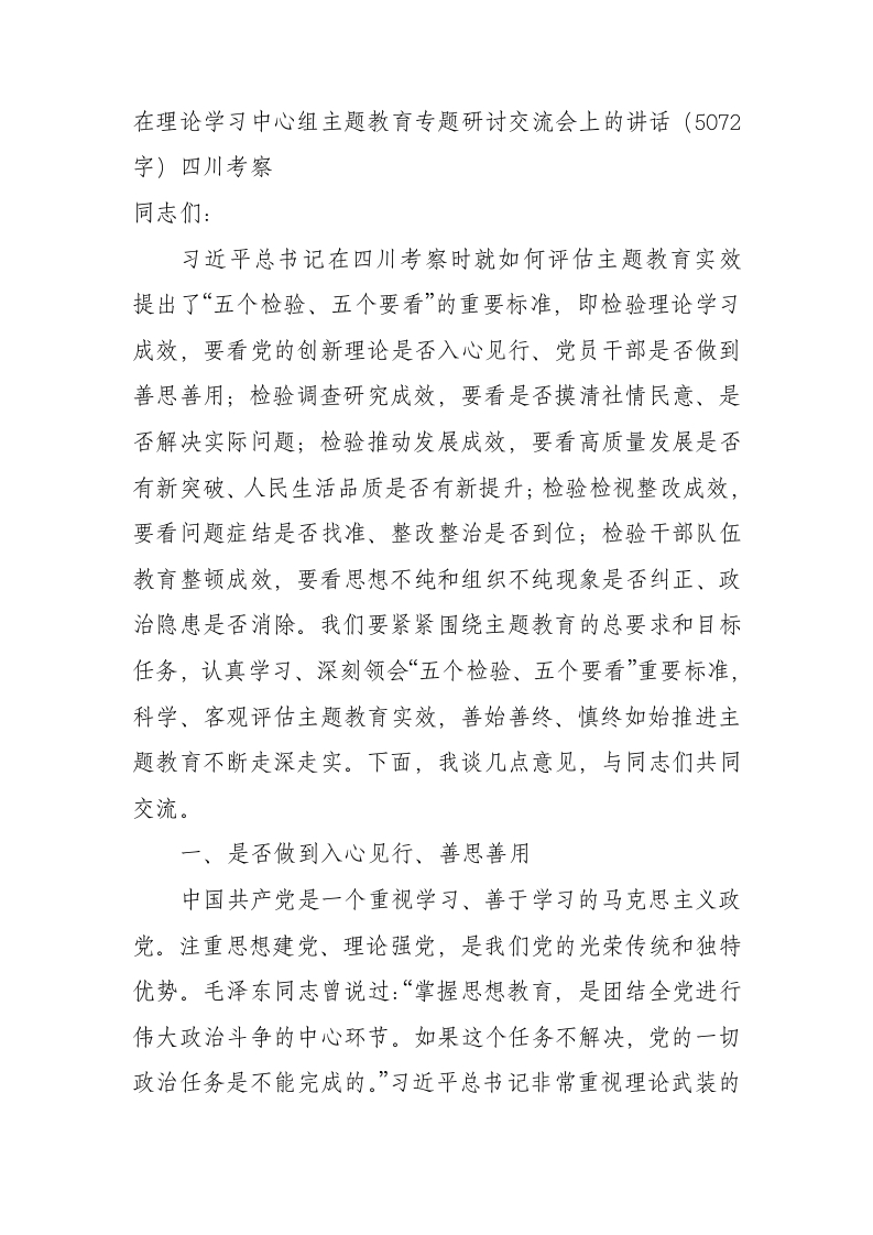 在理论学习中心组主题教育专题研讨交流会上的讲话——四川考察