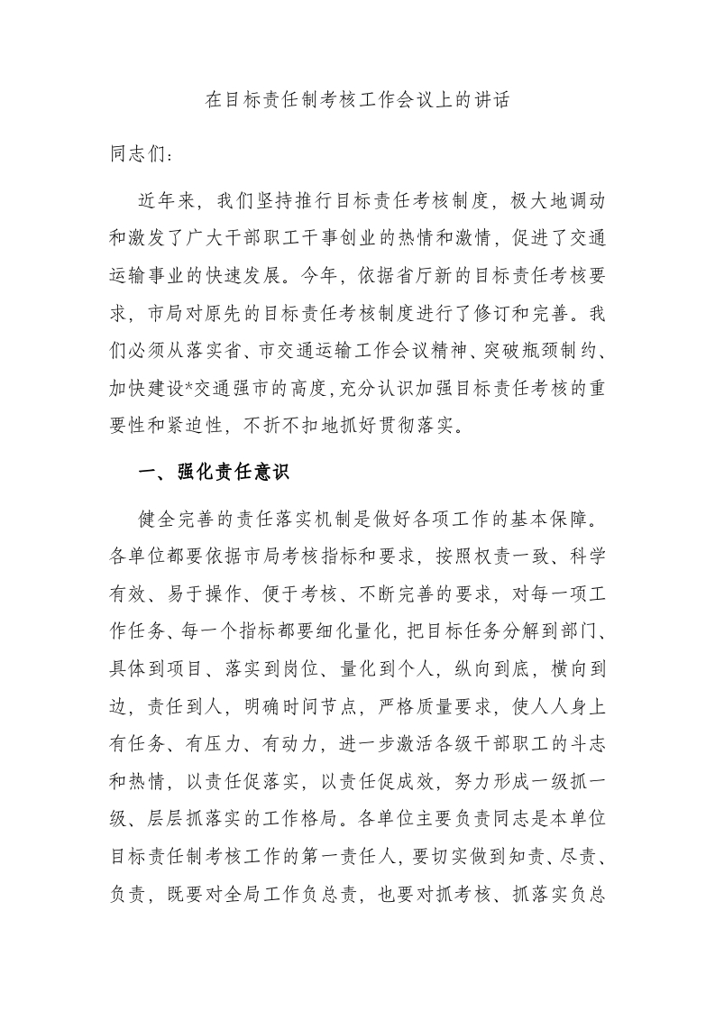 / 在目标责任制考核工作会议上的讲话