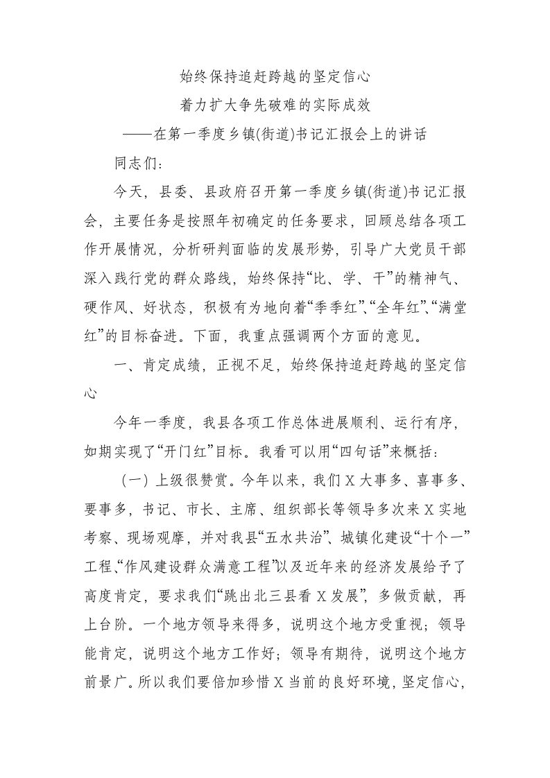/ 在第一季度乡镇(街道)书记汇报会上的讲话
