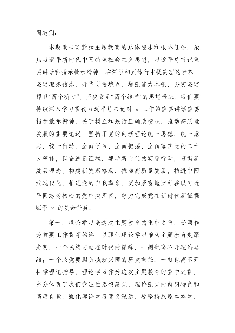 / 在第三次主题教育专题读书班研讨交流会上的讲话2500字
