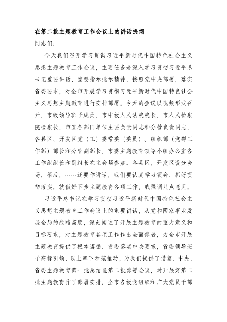 / 在第二批XX教育工作会议上的讲话提纲
