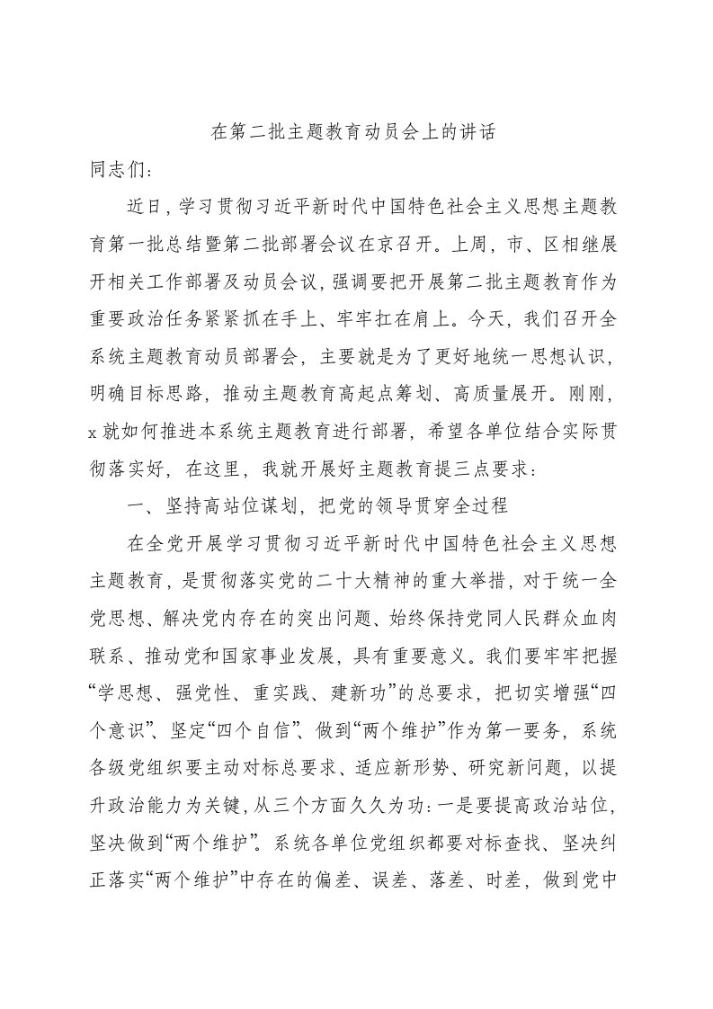 / 在第二批主题教育动员会上的讲话(医院2000字)√
