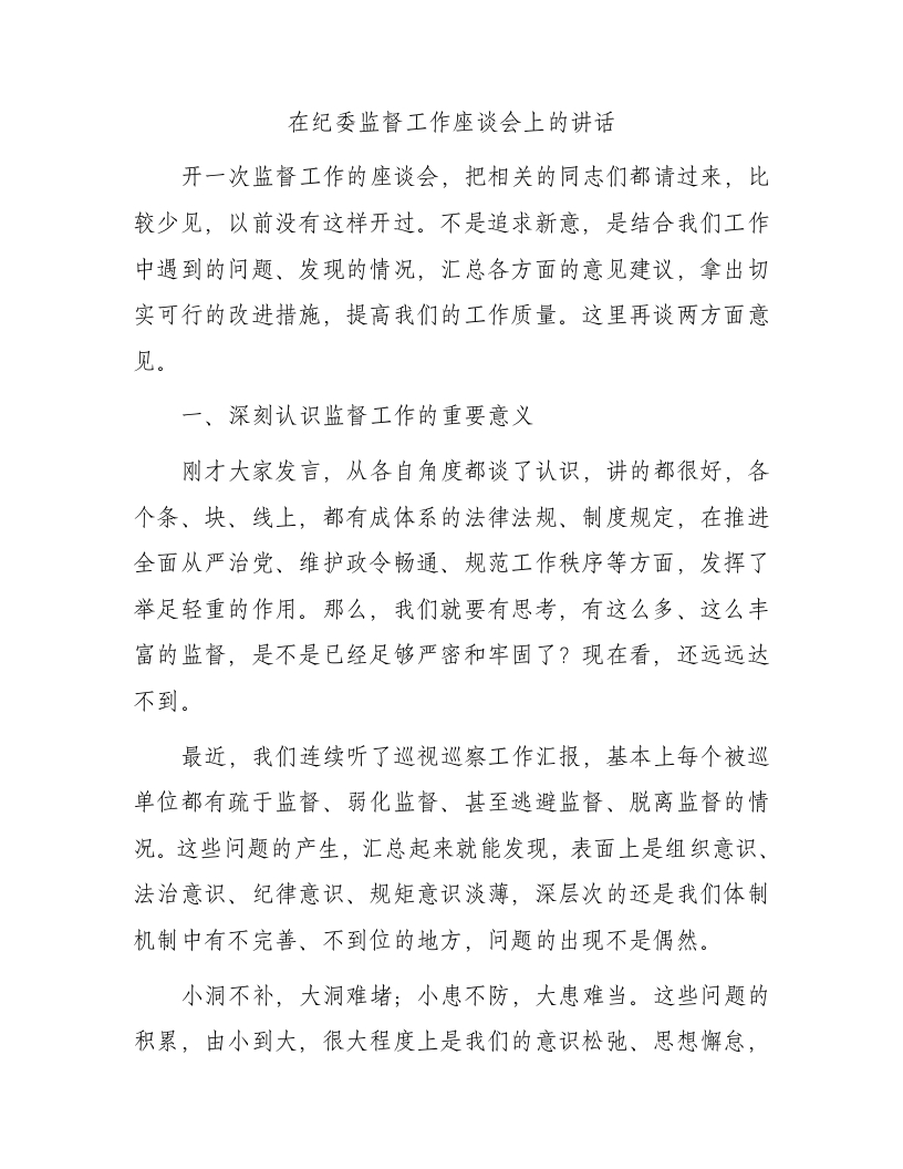在纪委监督工作座谈会上的讲话