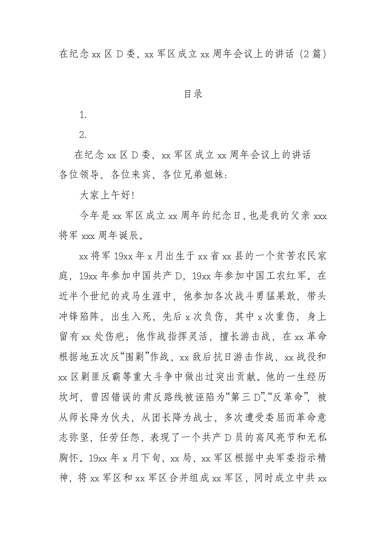 / 在纪念xx区党委、xx军区成立xx周年会议上的讲话(2篇)