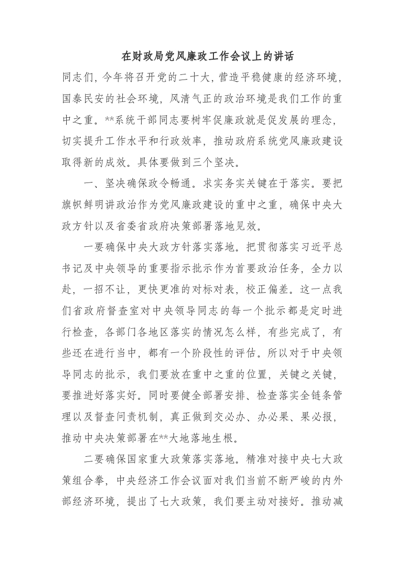 / 在财政局党风廉政工作会议上的讲话